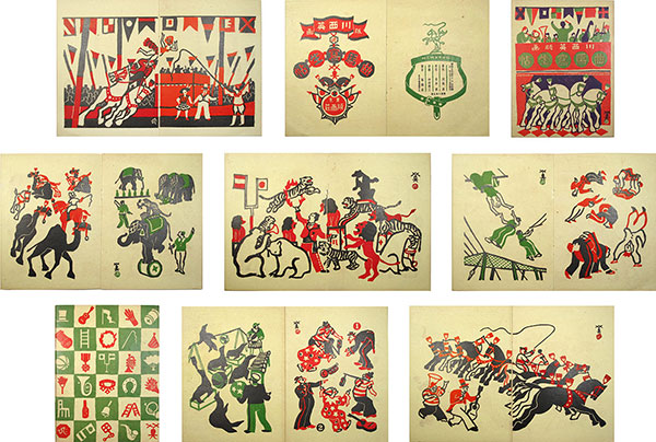 Note: There is some confusion about how a few of Kawanishi's books were produced, but the following seems to be the actual story regarding three publications in particular. Kanai Noriko, curator, Kobe City Museum (Kôbe-shiritsu Hakubutsukan: 神戸市立博物館), who is the world’s authority on the works of Kawanishi Hide, has found that in 1934, Kawanishi teamed up with the Tokyo publisher Hanga Sô to produce three books: two on the circus theme and one on the opera "Carmen." Operated by Hirai Hiroshi, the small publishing firm Hanga Sô was in business from 1/1933 to 9/1936, specializing in limited-edition books from blocks carved by sôsaku-hanga artists. The blocks for Kyokuba shaseichô were carved and proofed in Kawanishi's atelier in Kobe, but then sent to Tokyo and printed on paper derived from the cores of industrial paper cylinders by means of a novel type of machine press (using Kawanishi's blocks). The press was housed in a trade school now known as the Tokyo Institute of Technology, and was operated by their technician. Thus, contrary to what has been written in other sources, the images in these three books, while self-carved, were not self-printed by the artist. The current volume was the second of the circus books. It used more colors and was thus more costly to produce, which required pricing that impeded sales when first released. Today, of course, Kawanishi's circus-themed books and images are quite sought after by collectors. Kawanishi's renderings of equestrian riders, clowns, acrobats, trapeze artists, lion tamers, seal trainers, and elephant trainers capture the spectacle of the circus in a colorful and playful manner. Kawanishi's fascination with the circus world and his woodcuts detailing the various entertainments, although built upon a different aesthetic, remind us of the American artist Alexander Calder's (1898-1976) line drawings and lithographs on the same themes. Both artists expressed a childlike joy and excitement about the marvels to be witnessed in a circus. © 2019-2020 by John Fiorillo BIBLIOGRAPHY