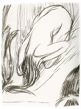 Tanaka: Untitled [Leaning over], pen and ink sketch